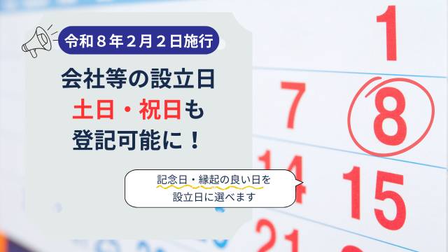 2026年2月2日施行の法改正により、会社、各種法人(以下「会社等」と言います)の設立日を土・日・祝日に設定することが可能となりました。